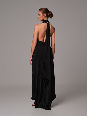 Crafted from soft, breathable jersey, this full-length silhouette features a gently draped neckline and a twist-detail waist that flatters every figure.